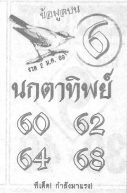 ไม่ว่าคุณจะเป็นคอหวยสายมู คนชอบตัวเลข หรือเซียนที่ตามมานาน “นกตาทิพย์” ถือเป็นอีกหนึ่งสำนักใบ้เลขที่ให้โชคมาหลายงวดติด และวันนี้เรานำแนวทางจริงจากภาพต้นฉบับมาเสิร์ฟให้ถึงที่ huaydee77 เพื่อให้ทุกคนได้เลือกตัวเลขที่ใช่ก่อนใคร