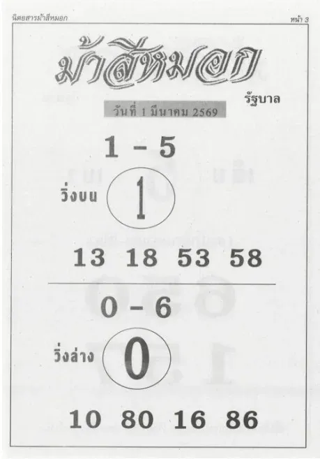 🎯 เลขเด่น-เลขรอง งวด 01/03/69 จากม้าสีหมอก