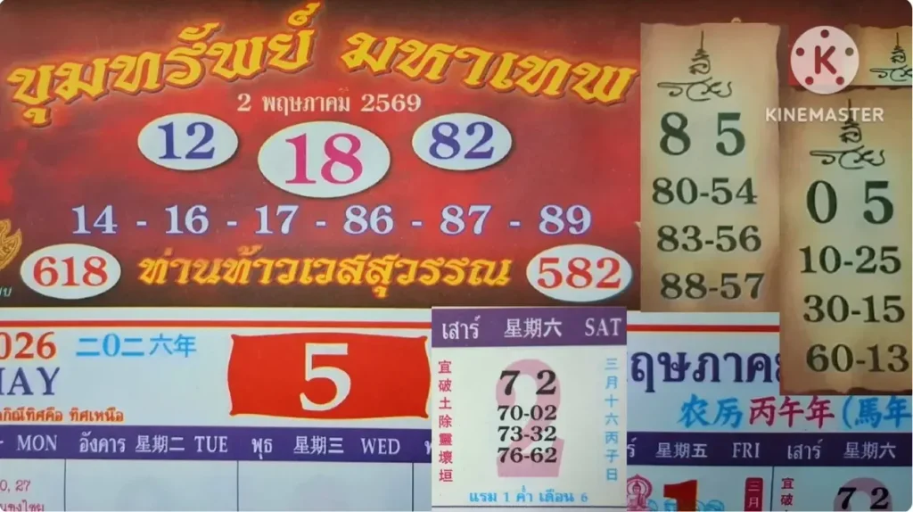 สำหรับใครที่กำลังมองหา เลขดัง ไว้เป็นแนวทางก่อนซื้อสลาก งวด 2 พฤษภาคม 2569 นี้ ปฏิทินท่านท้าวเวสสุวรรณถือว่าปล่อยเลขออกมาค่อนข้างน่าสนใจ โดยมีทั้งเลข 3 ตัวอย่าง 618, 582 และเลข 2 ตัวเด่นอย่าง 12, 18, 82 ที่น่าจะถูกหยิบไปลุ้นกันไม่น้อย ยิ่งเมื่อดูจากการกระจายตัวของเลขแล้ว จะเห็นว่า 1 และ 8 เป็นสองตัวที่โดดเด่นที่สุดในโพยชุดนี้