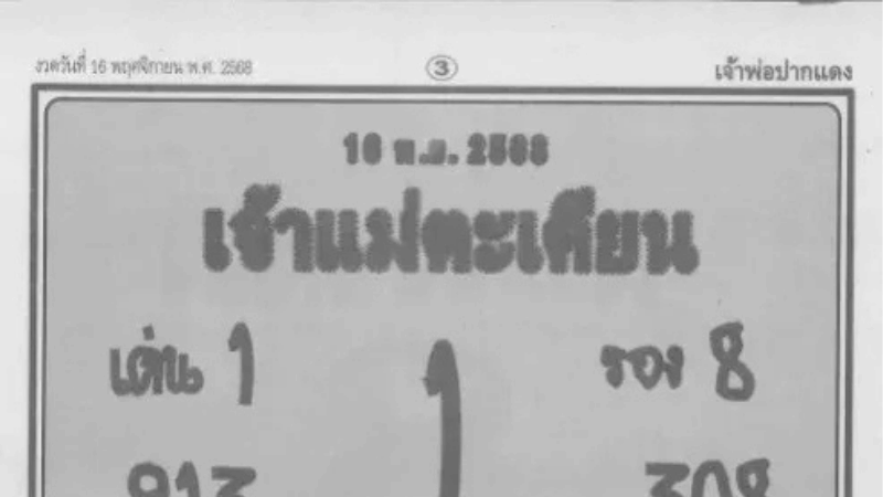 เปิดเลขเด็ด “เจ้าแม่ตะเคียน” งวด 16 พฤศจิกายน 2568 จากสำนักดัง ให้ครบทั้งเลขเด่น เลขรอง เลขสองตัว สามตัว พร้อมแนวทางเสริมโชคก่อนวันหวยออก ติดตามข่าวหวยและตรวจผลได้ที่ huaydee77